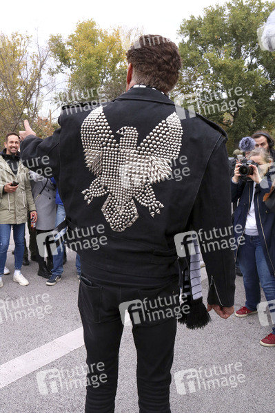 David Hasselhoff hupt mit Trabi-Fahrern 'Looking for Freedom' anlässlich des 30. Jahrestages des Mauerfalls auf der Rathausbrücke. Berlin, 19.10.2019