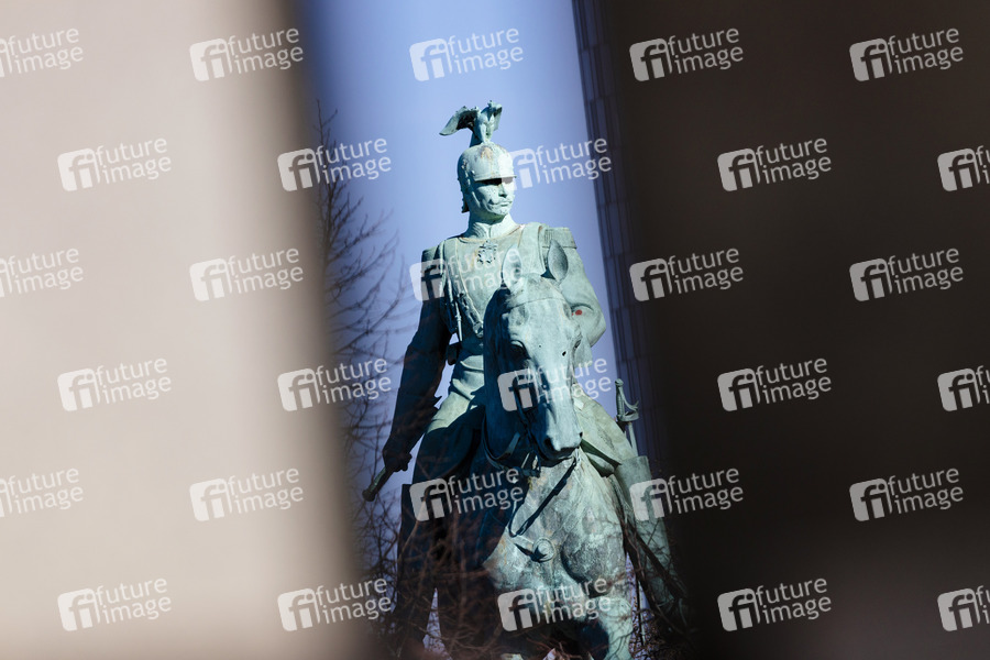 Reiterdenkmal von Kaiser Wilhelm II. an der Hohenzollernbrücke am Rheinufer in Köln. (Themenbild, Symbolbild) Köln, 02.04.2021