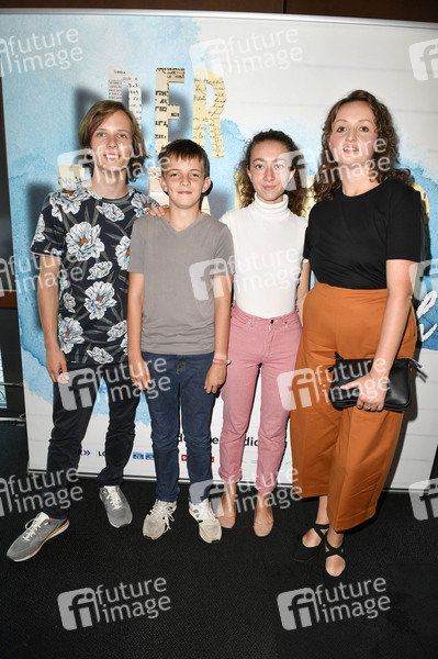Arved Friese, Juri Gayed, Mina Christ und Monika Oschek beim Photocall zur KiKA-Fernsehserie 'Der Krieg und ich' in der Begleitausstellung 'Der Krieg und ich - Kriegskinder 1939-1945' auf dem Dorothea-Schlegel-Platz. Berlin, 26.08.2019