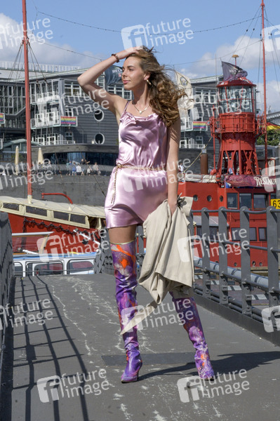 Miss Polonia Kandidatin Natalie Waletzko bei einem Fototermin auf der Überseebrücke im Hamburger Hafen. Hamburg, 24.07.2020