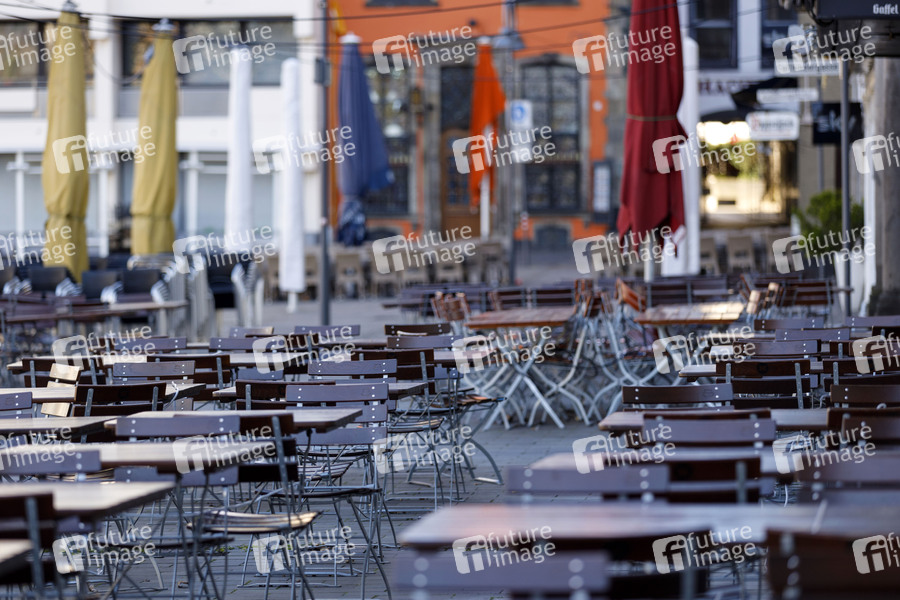 Der menschenleere Heumarkt mit geschlossenen Restaurants während der Corona-Krise. Köln, 22.03.2020