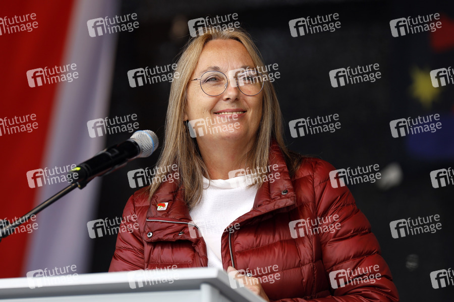 Anja Weber bei der Kundgebung des NRW DGB zum Ersten Mai im Autokino an der Merkur Arena. Düsseldorf, 01.05.2021