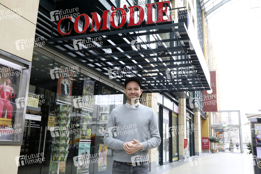 Christian Kühn bei der Aufzeichnung der Fernsehsendung zum 100. Geburtstag von Herbert Köfer vor der Comödie im World Trade Center Dresden. Dresden, 06.02.2021