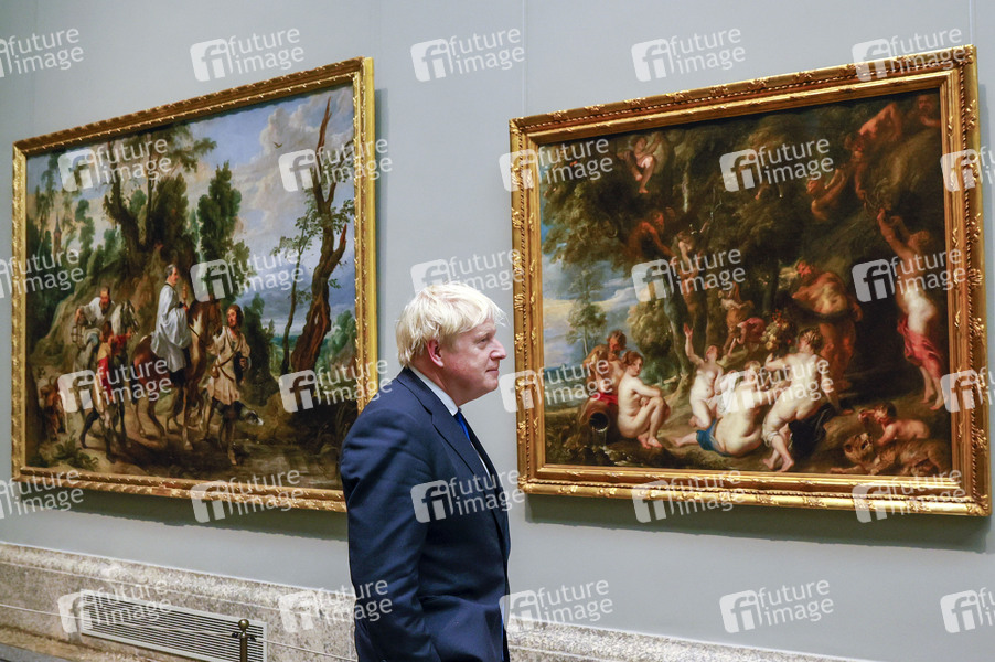 Boris Johnson bei der Ankunft zu einem informellen transatlantischen Abendessen der NATO Staats- und Regierungschefs im Prado-Museum. Madrid, 29.06.2022
