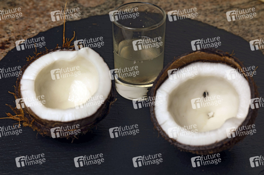 Kokosnussschale, Fruchtfleisch, Kokosnussmilch, Kokoswasser, fettreich, nährstoffreich, Kokosöl, Kokosöl, Kokosnusspalme, Nahrungsmittel, Kokos, Themenfoto, Themenbild