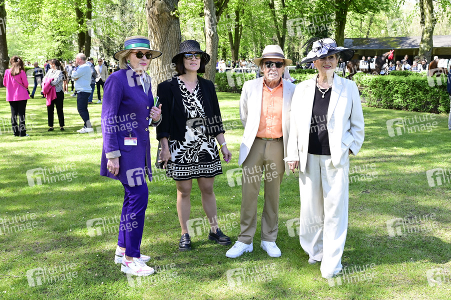 Tini Gräfin von Rothkirch, Sarah Würgler, Claus Theo Gärtner und Dagmar Frederic bei der Großen Saisoneröffnung 2025 auf der Rennbahn Hoppegarten. Berlin, 20.04.2025