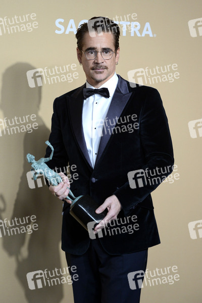 Colin Farrell mit dem Preis für den besten Hauptdarsteller in der Mini-Serie 'The Penguin' beim Preisträger-Photocall der 31. Screen Actors Guild Awards 2025 im Shrine Auditorium and Expo Hall. Los Angeles, 23.02.2025