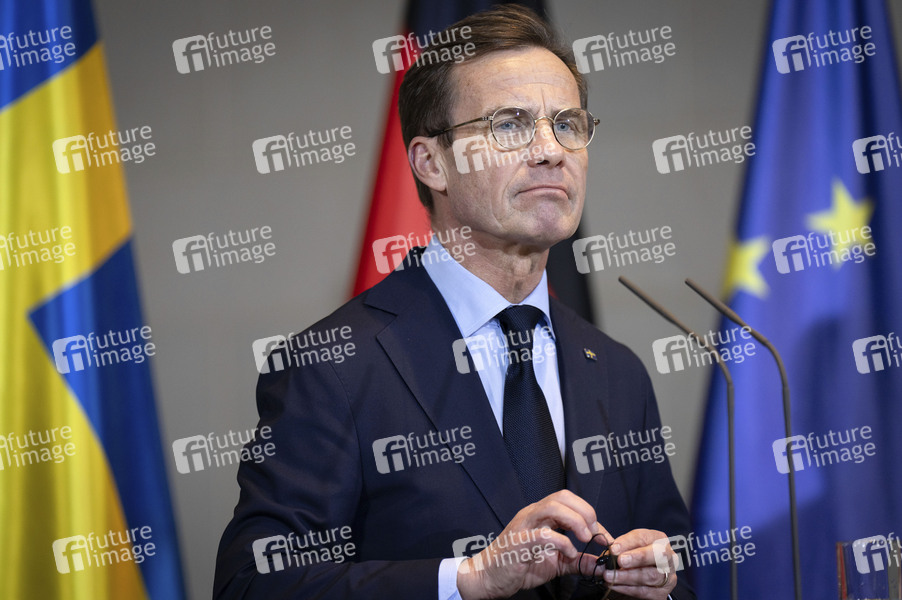 Ulf Kristersson bei der Pressekonferenz nach der Unterzeichnung der bilateralen deutsch-schwedischen Innovationspartnerschaft im Bundeskanzleramt. Berlin, 19.11.2025