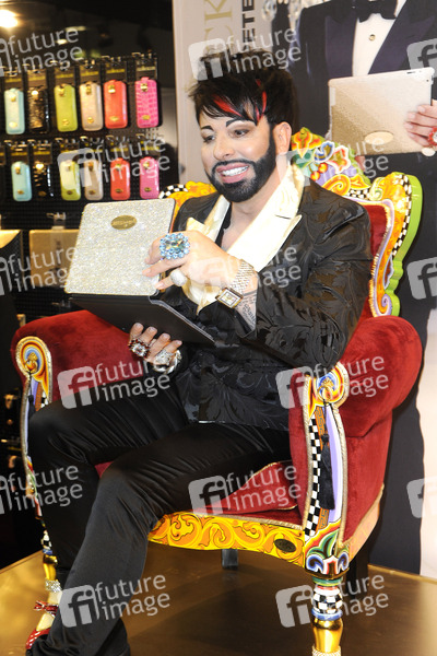 IFA 2012, Berlin - Harald Glööckler präsentiert am Stand von Peter Jäckel von ihm gestaltete Netbook- und Smartphone-Cases