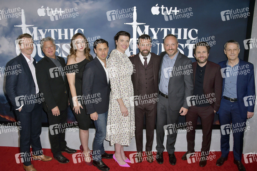 David Hornsby, Michael Rotenberg, Danielle Kreinik, Nick Frenkel, Megan Ganz, Rob McElhenney, Jason Altman, Charlie Day und Gerard Guillemot bei der Premiere der Apple TV+ Serie 'Mythic Quest: Raven's Banquet' im Pacific Theatre's Cinerama Dome. Los Angeles, 29.01.2020