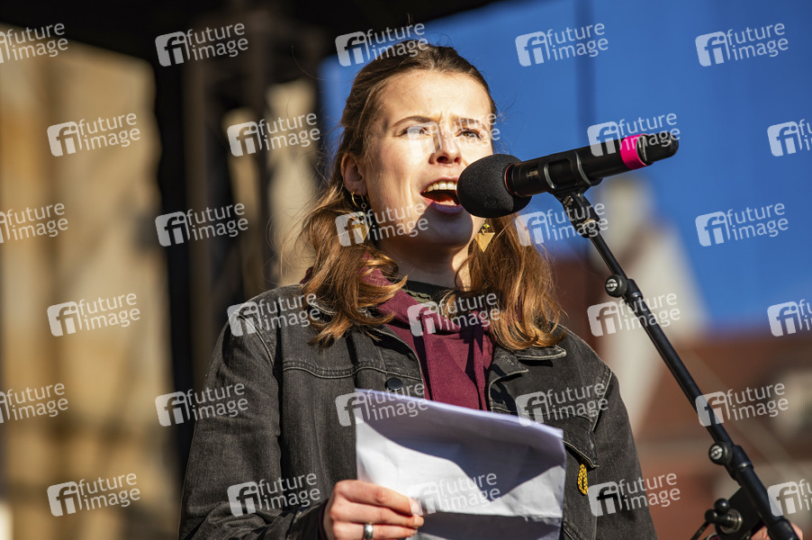 Großdemo, Aktion, Banner, Demo, Demonstrant, Demonstranten, Demonstrierende, Demonstration, Demonstrationszug, demonstrieren, Politik, Protestaktion, Demo, Protestdemo, Protestdemonstration, gegen Rechts, Rechtsextremismus, Kundgebung, gegen AfD, #ZusammenGegenRechts, #WirSindDieBrandmauer, Klimaschutz-Aktivistin, Publizistin