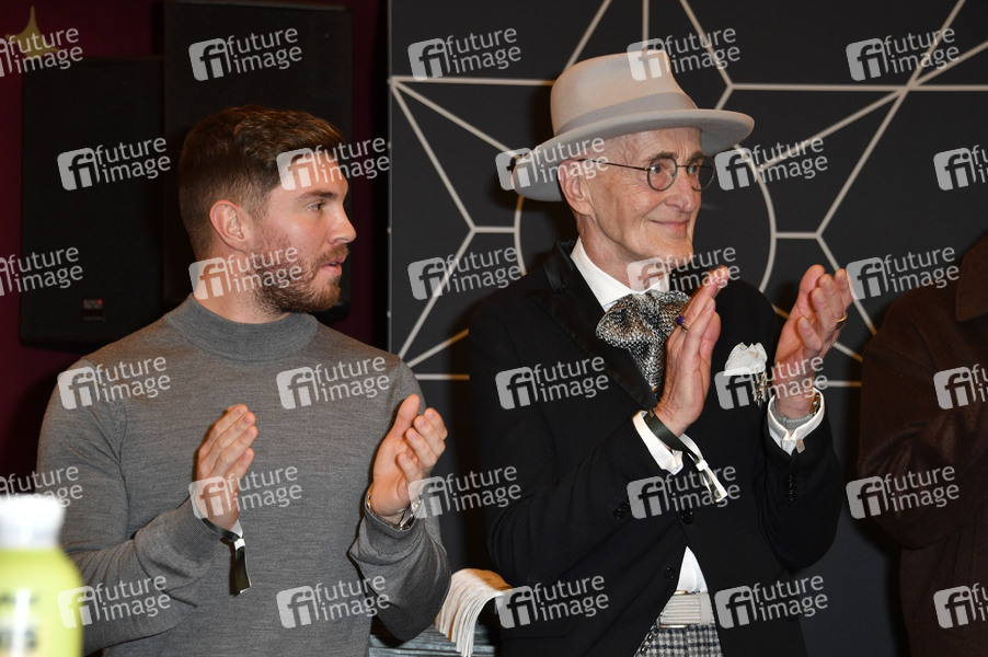Joey Heindle und Günther Krabbenhöft bei der 4. Charity Promi Pack 2024 Aktion von Maximilian Seitz in der Mall of Berlin. Berlin, 27.11.2024