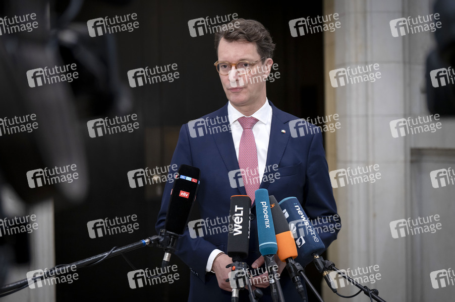 Hendrik Wüst beim Pressestatement am Rande der 1055. Sitzung des Bundesrates im Plenarsaal des Preußischen Herrenhauses. Berlin, 13.06.2025