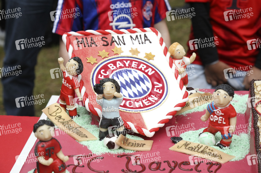 Die Jubiläumstorte beim Jubiläums-Fan-Event 125 Jahre FC Bayern München im Bayern-Park. Reisbach, 24.05.2025
