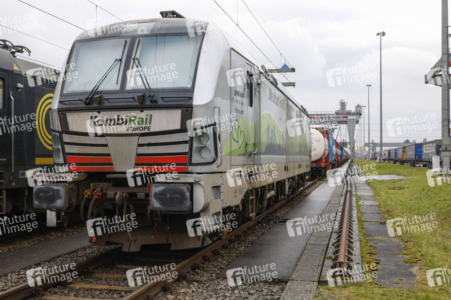 Siemens Vectron-Lok beim Fototermin 'DB montiert 400 Tonnen schwere neue Krananlage' im DUSS-Terminal Köln-Eifeltor. Köln, 23.01.2025