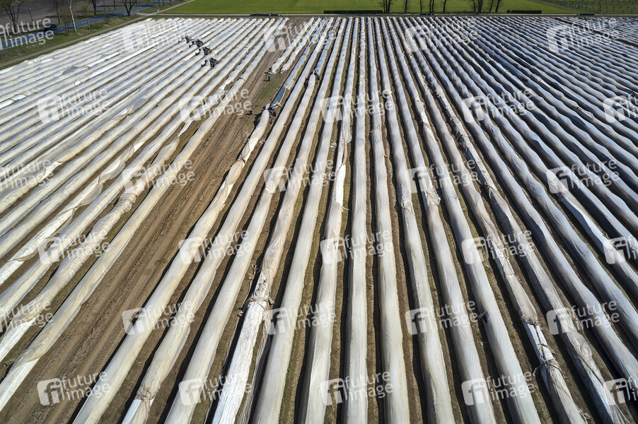 Spargelfeld, Spargel, Spargelfelder, Spargelernte, Gemüse, Erntehelfer, Feld, Luftbild, Luftaufnahme, Engels SpargelSpinne, Spargel Spinne, Spargelmashine