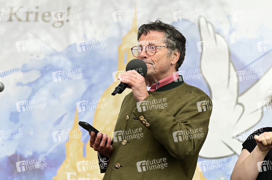 Diether Dehm bei einer 'Friedensprozession' am Karfreitag unter dem Motto 'Frieden kennt keine Brandmauern' auf dem Postplatz. Dresden, 18.04.2025