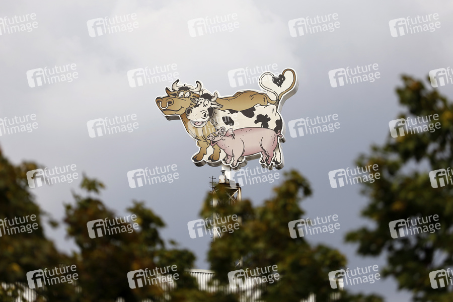 Logo der Lebensmittelfirma Tönnies am Hauptsitz in Rheda-Wiedenbrück. Der Fleisch-Konzern will die Schlacht- und Zerlegefirma Lazar übernehmen. Rheda-Wiedenbrück, 02.08.2020
