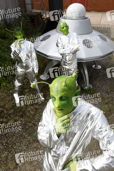 Bodypainting, Body-Painting, Cosplay, Cosplayer, Körperkunst, Körperfarben, Farbe, Bemalung, Kunst, Make-up, Latexapplikationen, Maskenbildnerei, unbekanntes Flugobjekt, Außerirdische, fliegende Untertasse, Raumschiff, fremde Wesen, Landung, Invasion, Science Fiction, body painting, body art, latex applications, unknown flying object, spacecraft, flying saucer, alien, strangers, landing, colors