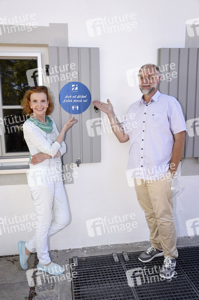 Jutta Kammann mit dem Leiter Peter Barbian bei einem Besuch in der Bildungs- und Erholungsstätte Langau. Steingaden, 21. August 2020