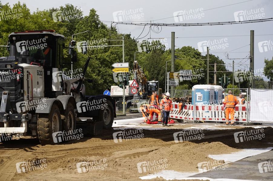 Beginn vom Abriss der maroden Brücke an der Wuhlheide (Oberschöneweide). Die kaputte Brücke soll schnellstmöglich entfernt werden mit dem Ziel, die Freigabe der blockieren Straßenbahntrasse und Wiederherstellung des Fuß- und Radverkehrs zwischen Treskowallee und Edisonstraße möglichst bis zum 30. Mai. Berlin, 23.05.2025