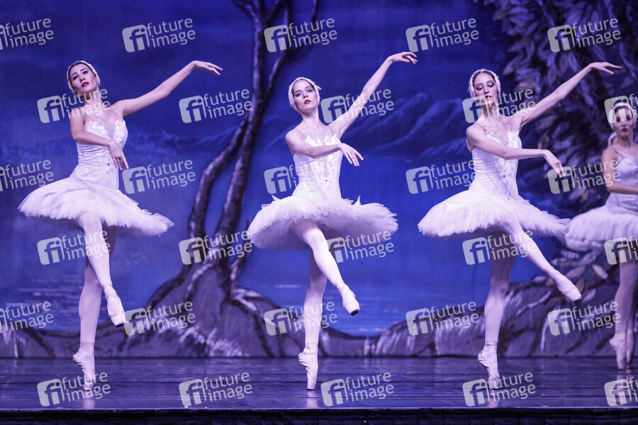 Ballett, Tanz, Ballettensemble, Körperbeherrschung, Körperspannung, Athletik, Körperkunst, Ballettkompanie, Schwanensee, Choreografie, Schwäne, Schwan, Tschaikowski, Schwanenprinzessin, Märchen, Märchenmotiv, Parabel, Fabel, Zauber, Fluch, Prinzessin, Traumprinz, Erlösung, Königin, Odile, schwarzer Schwan, weißer Schwan, Mythos, Libretto, Romantik, Zeitgenössischer Tanz, Tanztheater, Corps de ballet, Bühnenwerk, Aufführung, Stück, Bühne, Hofgesellschaft, Hofstaat, Operette, Ballerina, Primaballerina, Kultur, Kulturerbe, Nationalballett, Staatsballett, russische Kultur, Symbolbild, Symbolfoto