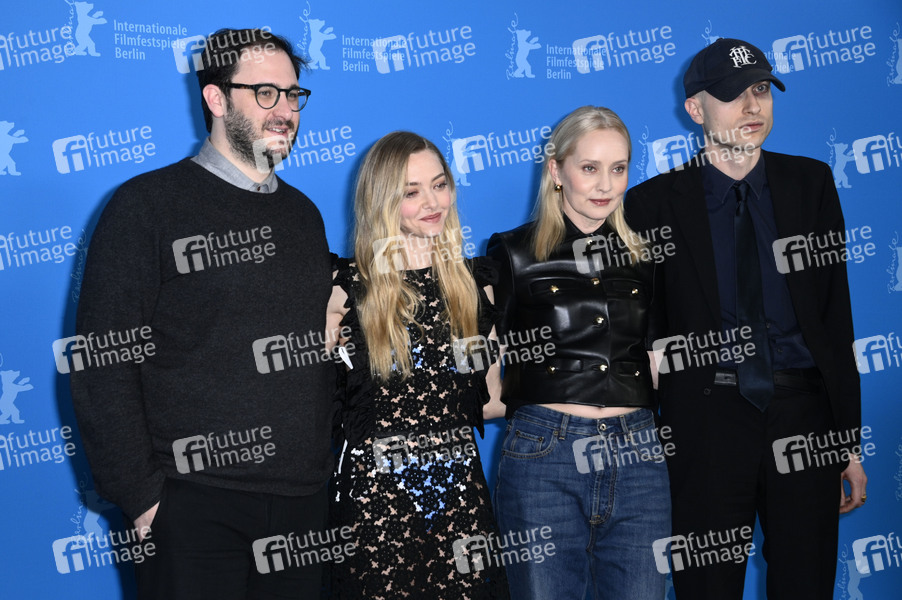 Andrew Morrison, Amanda Seyfried, Mona Fastvold und Daniel Blumberg beim Photocall zum Kinofilm 'The Testament of Ann Lee' auf der Berlinale 2026 / 76. Internationale Filmfestspiele Berlin im Hotel Grand Hyatt. Berlin, 19.02.2026