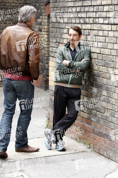 Dominic Raacke und Boris Aljinovic beim Setfototermin zum ARD-Krimi 'Tatort - Großer schwarzer Vogel' in der Schlesischen Straße. Berlin, 26.06.2013