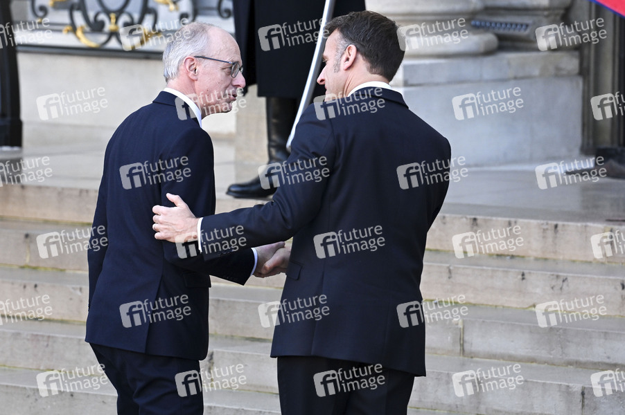 Luc Frieden und Emmanuel Macron beim Treffen der Koaltion der Willigen zu Beratung über die militärische Unterstützung für die Ukraine im Élysée-Palast. Paris, 06.01.2026