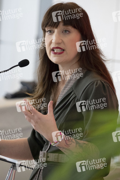 Politik, Statement, Pressekonferenz, PK, Reichstag, Deutscher Bundestag, Demokratie, Parlament, Parlamentsgebäude, Volksvertreter, MdB, Mitglied des Bundestages, Abgeordnete, Politikerin, Vorsitzende der Fraktion Die Linke