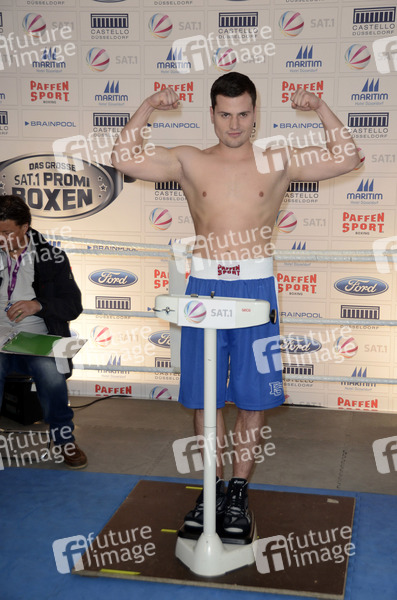 Rocco Stark beim Wiegen zum TV-Kampfevent 'Das große SAT.1 Promiboxen' im Sportgarde Box-Club. Düsseldorf, 06.03.2013