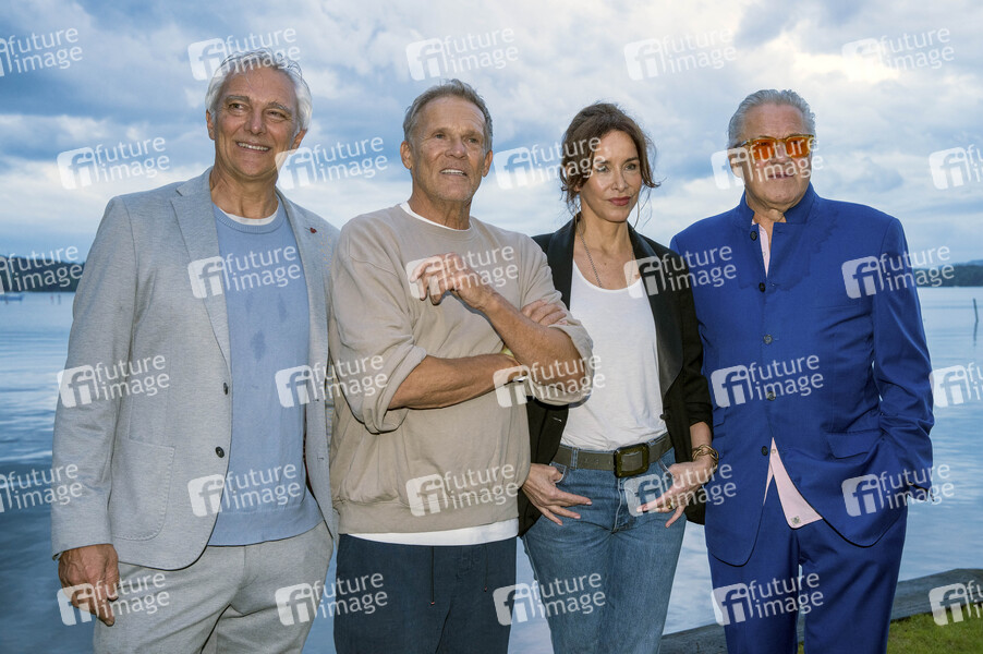 Matthias Helwig, Christian Tramitz, Katharina Müller-Elmau und Michael Brandner bei der Premiere von zwei neuen Folgen der ARD-Vorabendserie 'Hubert ohne Staller' auf dem Open Air Starnberg 2025 im Open Air Kino im Seebad. Starnberg, 05.08.2025