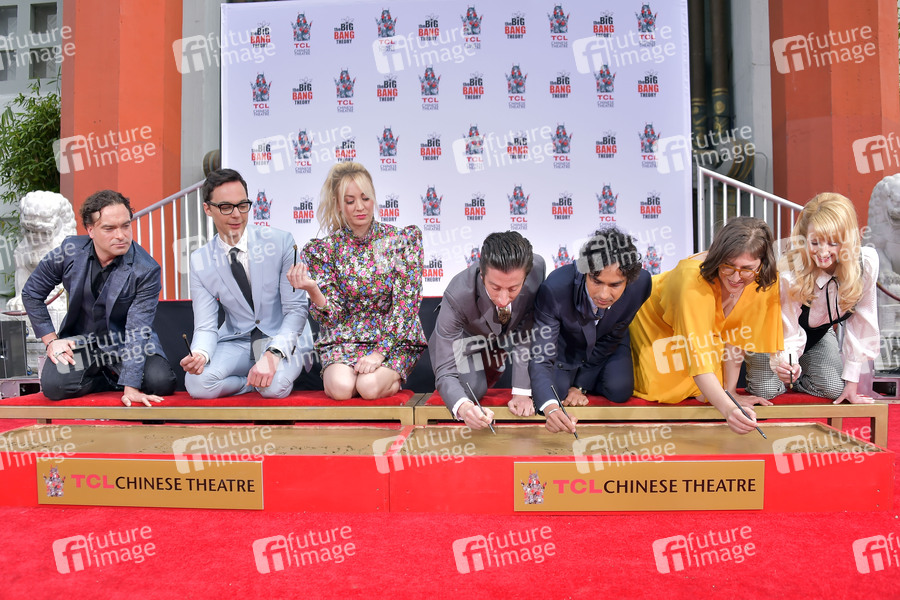 Johnny Galecki, Jim Parsons, Kaley Cuoco, Simon Helberg, Kunal Nayyar, Mayim Bialik und Melissa Rauch bei der Handprints Ceremony am TCL Chinese Theatre Hollywood. Los Angeles, 01.05.2019