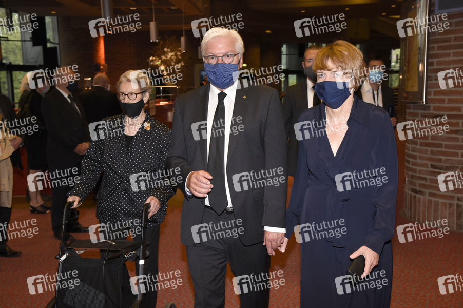 Liselotte Vogel, Frank-Walter Steinmeier und Elke Büdenbender bei der Trauerfeier für den verstorbenen Münchner Alt-OB und Ehrenbürger Dr. Hans-Jochen Vogel in der Philharmonie des Gasteig. München, 03.08.2020