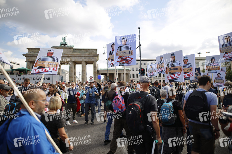 Demonstranten verschiedener Gruppierungen wie etwa der Initiative Querdenken 711 protestierten mit einer Großdemonstration in Berlin gegen die bestehenden Maßnahmen zur Eindämmung der Corona-Pandemie. Wegen Nichteinhaltung der polizeilichen Auflagen wurde die Demonstration durch die Polizei beendet. Es gab Rangeleien und Festnahmen. Berlin, 29.08.2020