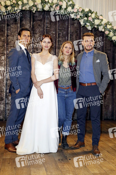 Tim Oliver Schultz, Emilia Schüle, Alicia von Rittberg und Edin Hasanovic beim Fototermin am Set des Kinofilms 'Hallo Again' auf der MS Bleichen. Hamburg, 15.04.2019.