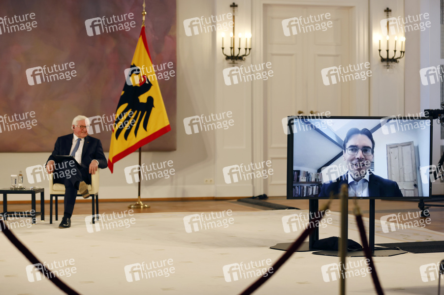 Frank-Walter Steinmeier und Ben Scott beim 11. Forum Bellevue: 'Demokratie und digitale Öffentlichkeit - Eine transatlantische Herausforderung' im Schloss Bellevue. Berlin, 01.03.2021