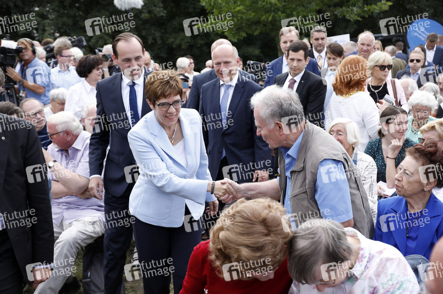 Annegret Kramp-Karrenbauer bei einer Gedenkveranstaltung der Brandenburger und Berliner CDU anlässlich des 58. Jahrestages des Mauerbaus an der Glienicker Brücke. Potsdam, 13.08.2019