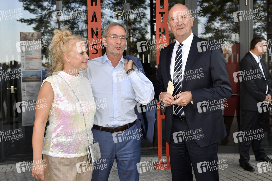 Jeanette Jesorka, Matthias Platzeck und Dietmar Woidke bei der Eröffnung des 27. Jüdischen Filmfestivals Berlin & Brandenburg im Hans Otto Theater. Potsdam, 12.08.2021