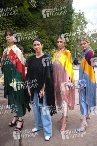 Fashion Show von 10 Modedesignern, die konzipiert wurden, um die charakteristische Mode zu feiern und ihre Rolle in der spanischen Wirtschaft und Kultur zurückzugewinnen auf dem Paseo del Prado. Madrid, 11.04.2021