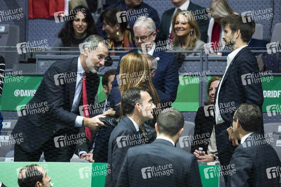 König Felipe VI. von Spanien, Shakira und Gerard Pique beim Davis Cup Finale 2019 Spanien gegen Kanada im Sportkomplex Caja Mágica. Madrid, 24.11.2019