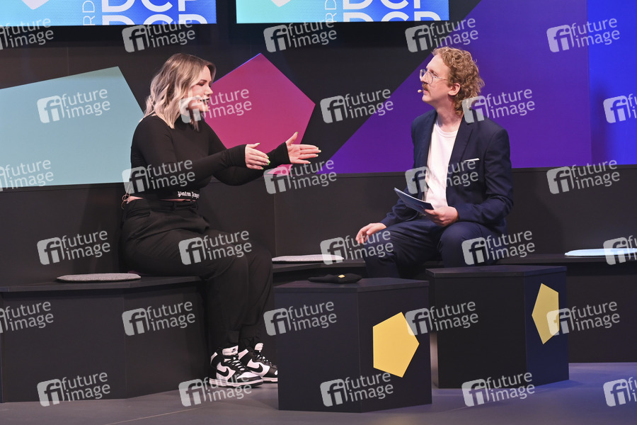 Maxi Gräff und Uke Bosse bei der Verleihung des Deutschen Computerspielpreises 2022 in der TonHalle. München, 31.03.2022