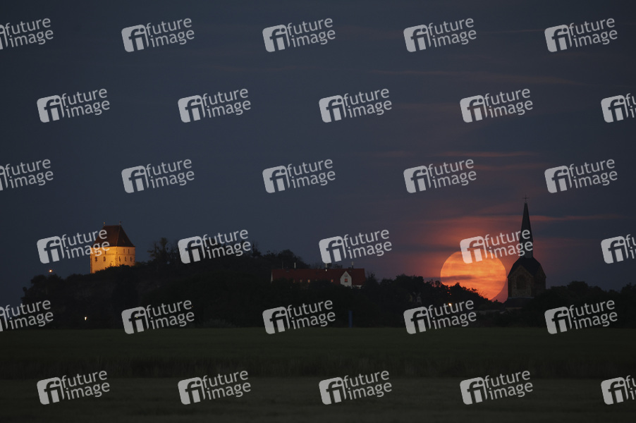 Vollmond hinter der Dorfkirche St. Anna und St. Katharina. Gütz, 14.06.2022
