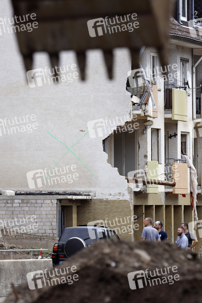 Nach dem Jahrhunderthochwasser in der Eifel durch heftige Regenfälle und Dauerregen mit Überschwemmungen und Überflutungen haben die Aufräumarbeiten im Ahrtal große Fortschritte gemacht. Einheiten von Polizei, THW, Bundeswehr und Feuerwehr mitsamt vielen freiwilligen Helfern haben Straßen geräumt, Schutt und Schlamm entfernt und die Menschen versorgt. Der Wiederaufbau wird trotzdem Jahre dauern. Im Bild Flutschäden in der Ortschaft Mayschoß, in der die Flut viele Häuser zerstörte, 08.08.2021