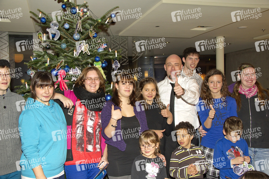 Der Graf und Kinder gemeinnütziger Einrichtungen schmücken gemeinsam einen Tannenbaum im Look des Animationsfilms 'Sammys Abenteuer 2' im Cinemaxx, Berlin