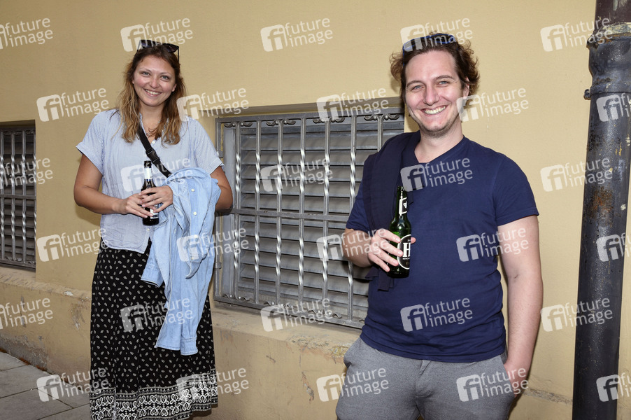 Mirja Huber und Sascha Fersch bei der Aktion 'Theater lebt' vor dem Hofspielhaus. München, 19.05.2020
