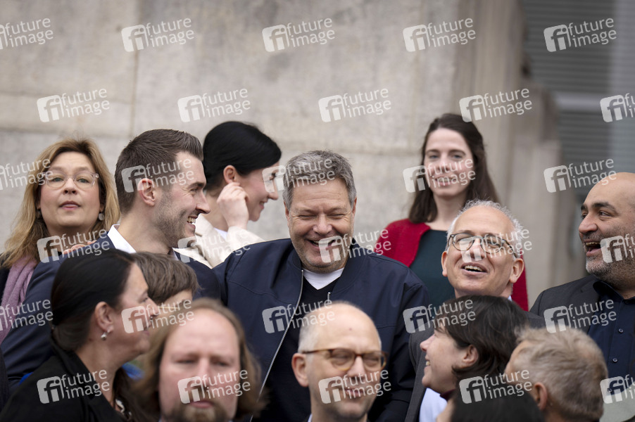 Robert Habeck beim Gruppenfoto der neuen Bündnis 90/Die Grünen Fraktion nach der Fraktionssitzung der Bündnis 90/Die Grünen-Bundestagsfraktion auf der Treppe zum Reichstagsgebäude. Berlin, 26.02.2025