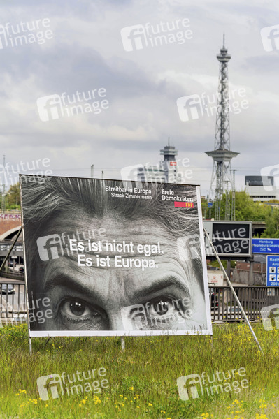 Ein Plakat der Partei FDP zur Europawahl. Vom 6. bis 9. Juni 2024 wählen die Bürgerinnen und Bürger der Europäischen Union (EU) zum zehnten Mal das Europäische Parlament. In Deutschland wird am Sonntag, 9. Juni 2024 gewählt. Berlin, 22.04.2024