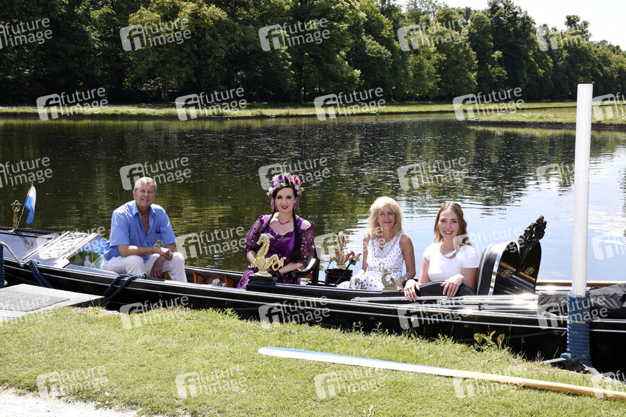 Michael Schwarzmaier, Angelika Zwerenz, Linda Jo Rizzo und Anna Juliana Jaenner bei einer Gondelfahrt in der 'Gondel Nymphenburg' im Schlosspark vom Schloss Nymphenburg. München, 13.06.2020