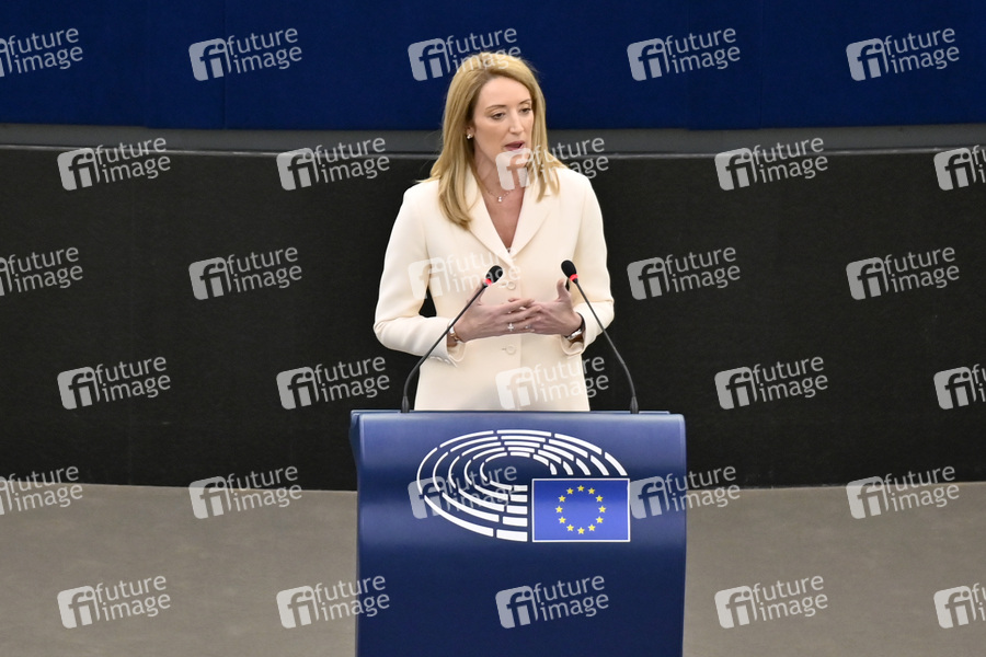 Roberta Metsola bei der Präsidentschaftskandidaten-Präsentation im Plenarsaal des Europäischen Parlaments. Straßburg, 18.01.2022